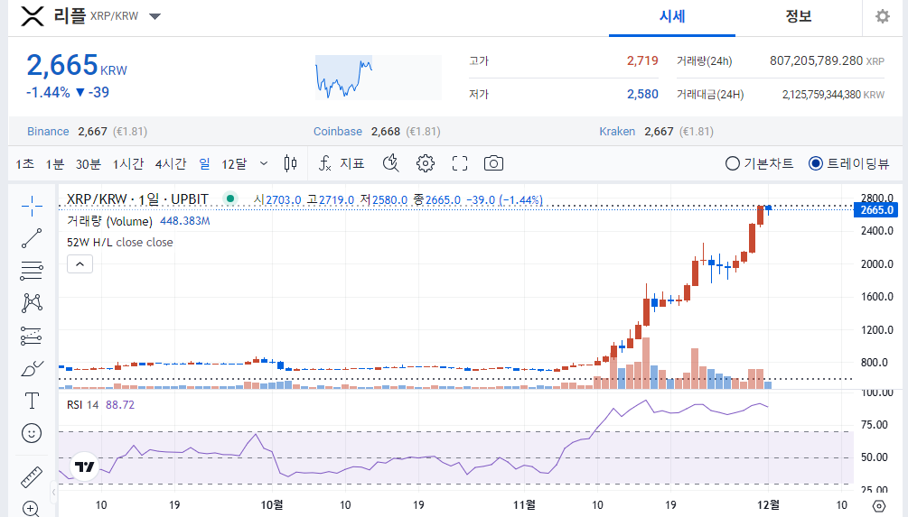 리플이 지금 2,000원 이상 엄청난 급등을 보여주는 지금 조금씩 조정을 받으며 상승의 조짐을 보이고 있는데요, 조정을 받더라도 의심하지 마십시오. 지금 이 시점에서 봤을 때 진정한 공포는 2,000원에서 700원까지 다시 떨러 지는 것이 아니라, 이 3년이란 긴 시간을 힘들게 버티고 견뎌왔으면서 겨우 이런 작은 1차 상승분을 먹고 리플이 만원, 이만 원 엄청난 상승을 보여줄 때 구경만 하는 것이라고 생각합니다. 어떤 투자자는 '내가 정말 혐오하던 리플 다시 사모으는 이유'라고 이야기하면서 정말 리플을 싫어했는데, 그 리플이 이번 상승장에서는 가장 큰 상승분의 수익을 안겨줄 효도종목이 될 것이라고 기대를 하고 있습니다. 이 글은 리플을 아시는 모든 분들이 알아두었으면 하는 내용이라 공유합니다. 이 글은 10 xMedia의 정시우 트레이더님의 글을 공유합니다 (출처). 나중에 시간 되시면 다른 유익한 글들도 찾아보셨으면 유익할 것으로 보입니다.
